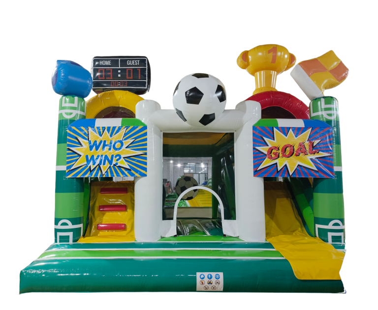 Unsere bunte Hüpfburg im Fußball-Design lädt Kinder zum Springen, Toben und Spielen ein. Mit großem Fußball, Pokal und Anzeigetafel fühlen sich kleine Kicker wie echte Champions! Spaß und Bewegung garantiert!