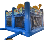 Multiplay Hüpfburg mit Rutsche und Spielelementen. Sie ist bei Jungs und Mädchen gleichermaßen beliebt und sorgt für viel Spaß und Abwechslung. Sie ist aufwändig mit mehreren 3D Haien verziert und tierisch cool..