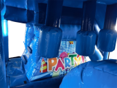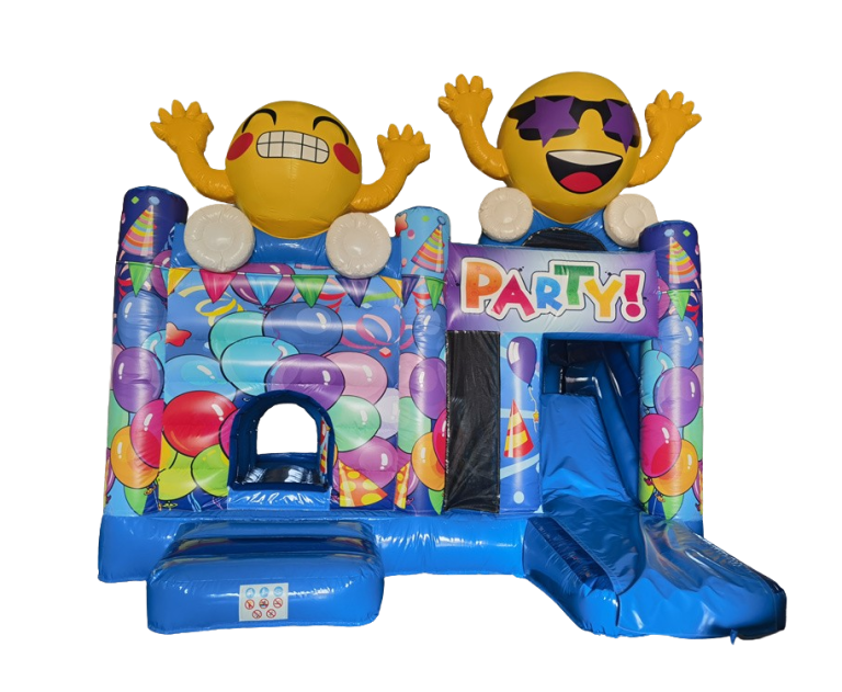 Party-Spaß garantiert! Unsere farbenfrohe Hüpfburg mit Party Motiv ist der absolute Blickfang auf jedem Kindergeburtstag oder Event. Mit Rutsche und Sprungfläche bietet sie jede Menge Spaß und Bewegung für die Kids. Die bunten Ballons und der große Smiley sorgen direkt für gute Laune und Party-Feeling.