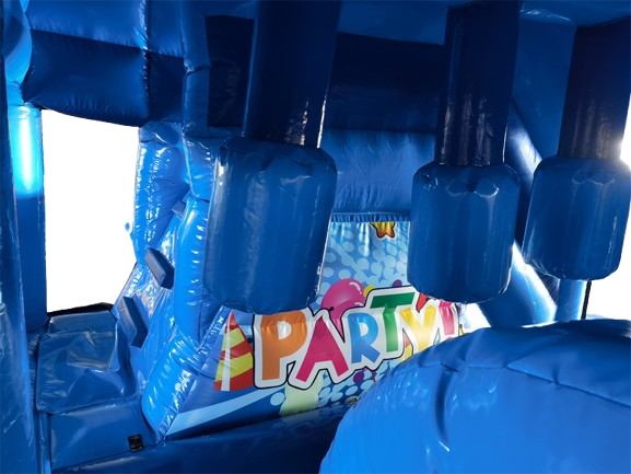 Diese Hüpfburg ist besonders bei Mädchen sehr beliebt. Sie hat eine stabile Sprungfläche mit Rutsche, Dach und schönen Motiven. Durch die seitlichen Netze kann kein Kind herausfallen und man hat trotzdem alles gut im Blick.