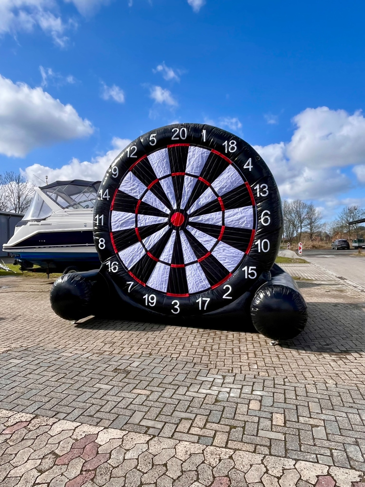 Unsere XL Dartscheibe sorgt auf jeder Party für eine Menge Spaß. Ideal für Geburtstagsfeiern, Familienaktivitäten oder als Ergänzung zu einer Hüpfburg. Wie beim "echten" Dart werden die Pfeile geworfen.